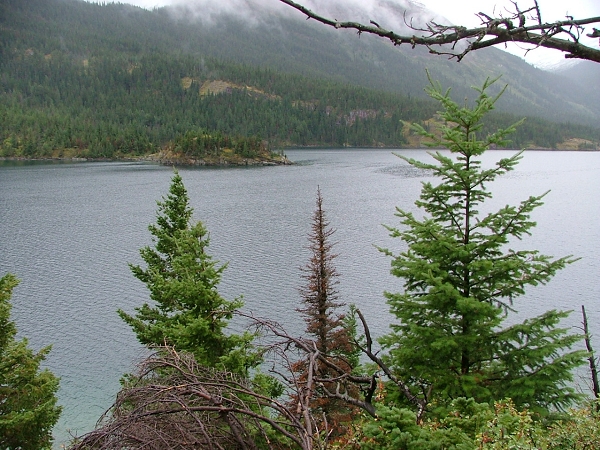 Partial clearing but still cold and damp. This is upper St. Marys Lake.